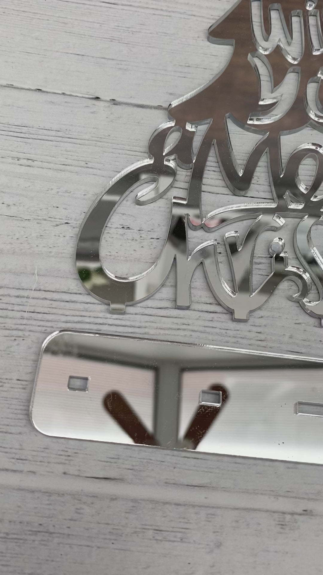 Make your holiday décor sparkle with this freestanding “Merry Christmas” sign crafted from premium mirrored acrylic. Sleek, modern, and eye-catching, it reflects light beautifully and adds a touch of festive elegance to any setting from fireplace mantels to holiday tables.