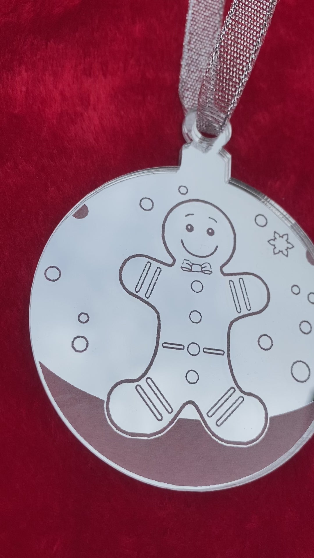 Add some shimmer and sweetness to your Christmas tree with this adorable gingerbread man bauble! Crafted from high-quality mirrored acrylic, this charming ornament captures the fun of the holiday season with a modern, reflective twist.