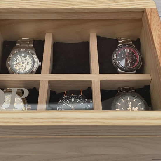 Personalised Wooden Watch Box for 6 Watches – Engraved Luxury Watch Storage Case