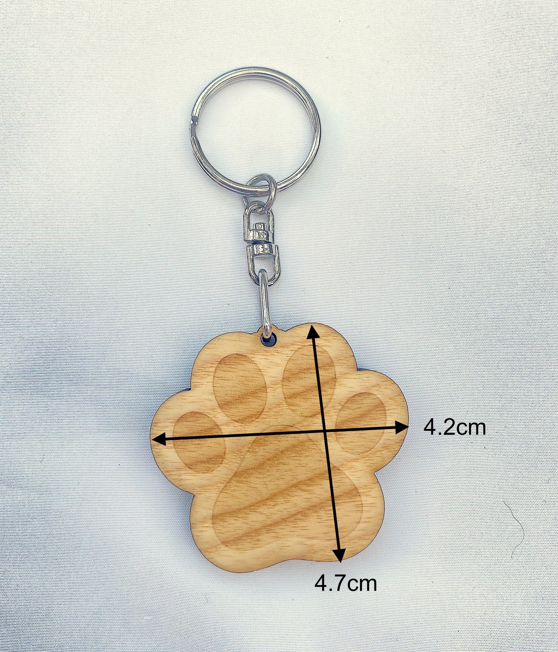 Keep your furry friend close wherever you go with our wood paw print keyring. A beautiful accessory for pet owners and animal lovers alike. A classic paw print design.