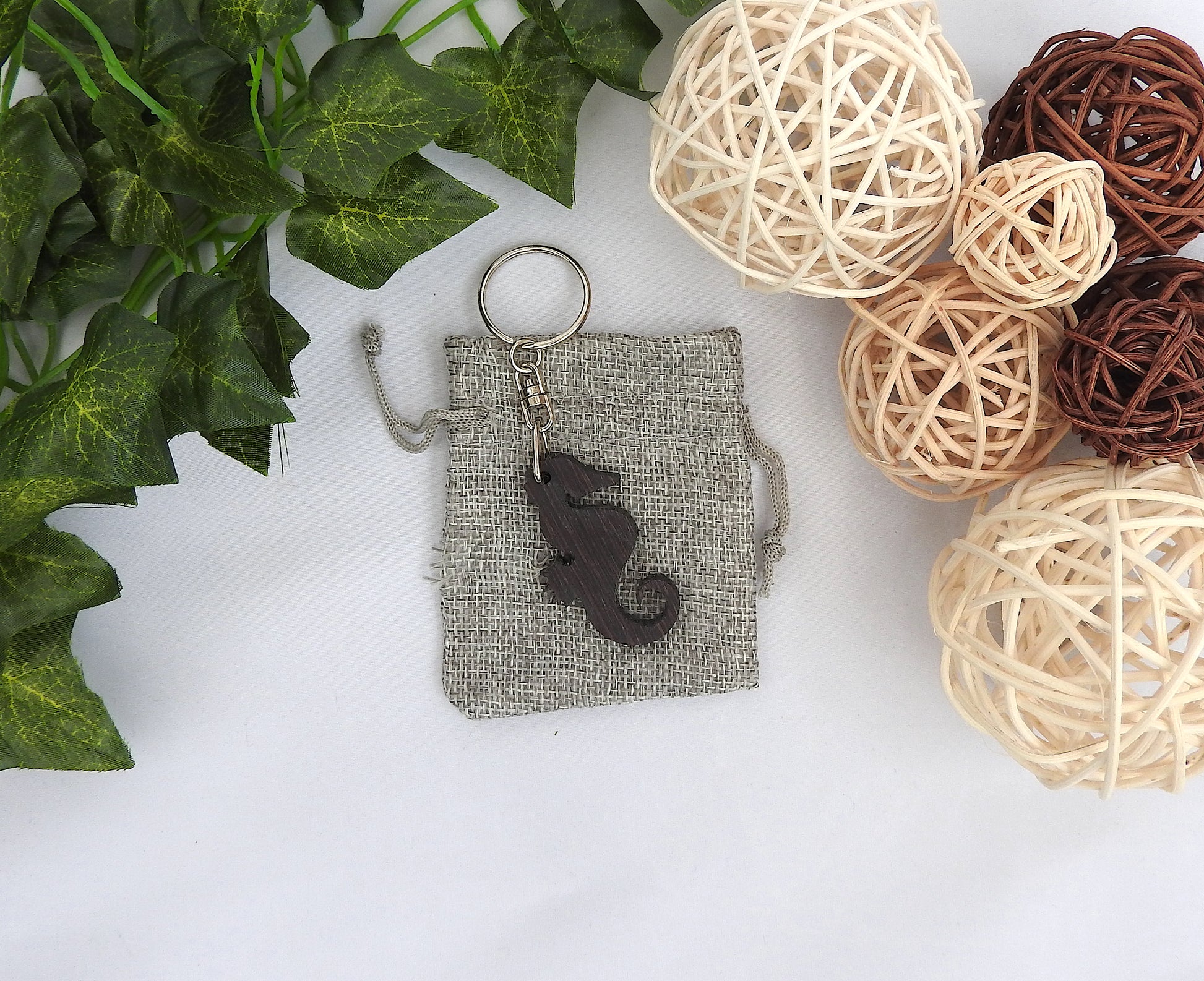 Wood Seahorse Keychain
